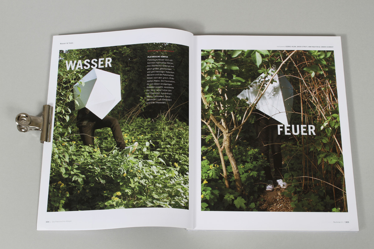 Das Thema der vierten Ausgabe des Studentenmagazins der BTK sind die vier Elemente Feuer, Wasser, Luft und Erde. Jeder Mensch kommt täglich mit ihnen in Berührung. Unser Credo für diese Publikation war es, die elementaren Dinge des Lebens auf ungewöhnliche Art und Weise darzustellen. Die Interpretation der Elemente durfte sich dabei weit von der gewohnten Sichtweise entfernen, sollte unterhalten und doch nicht den Bezug zum alltäglichen verlieren. Die Geschichten und Fakten, welche die Studenten gefunden und erfunden haben, werden den Umgang mit den vier Elementen nach dieser Lektüre hoffentlich stärker bewusst machen. Das Erkennen des Besonderen im Alltäglichen ist eine Qualität, die mit der Ausgabe vier der »Nummer« jeden Leser bereichern sollte.