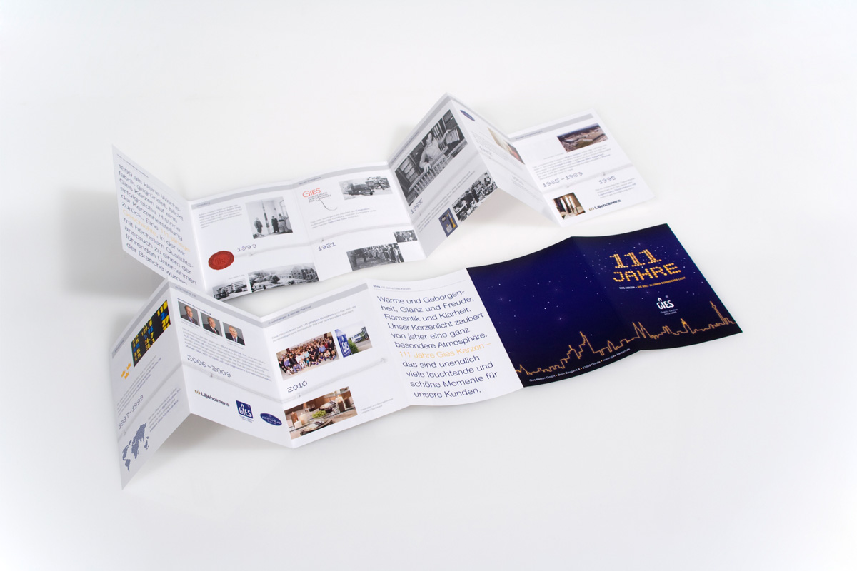 A branding was conceived and designed for the 111th anniversary of the candle producers Gies, who wanted to revitalise their tradition-rich brand. For this the number 111 is brought to life with spots that recall tealights. For trade-fair appearances the point becomes an arch, which is used as an overarching element as well as quoting the circle. A screen installation displaying a range of contents invited visitors to pause to look and listen. For the print applications, punched holes, which give the materials a deeper dimension, produce a refined and modern haptic effect. Film greeting cards, which create interest through motion graphics, were spread selectively through social networks to give the brand more digital presence. At selected moments throughout the year customer-loyalty actions were begun via microsites set up especially for the purpose. In addition newsletters strengthened relations with existing customers, attracted new customers, and provided information about promotions in outlet stores.
